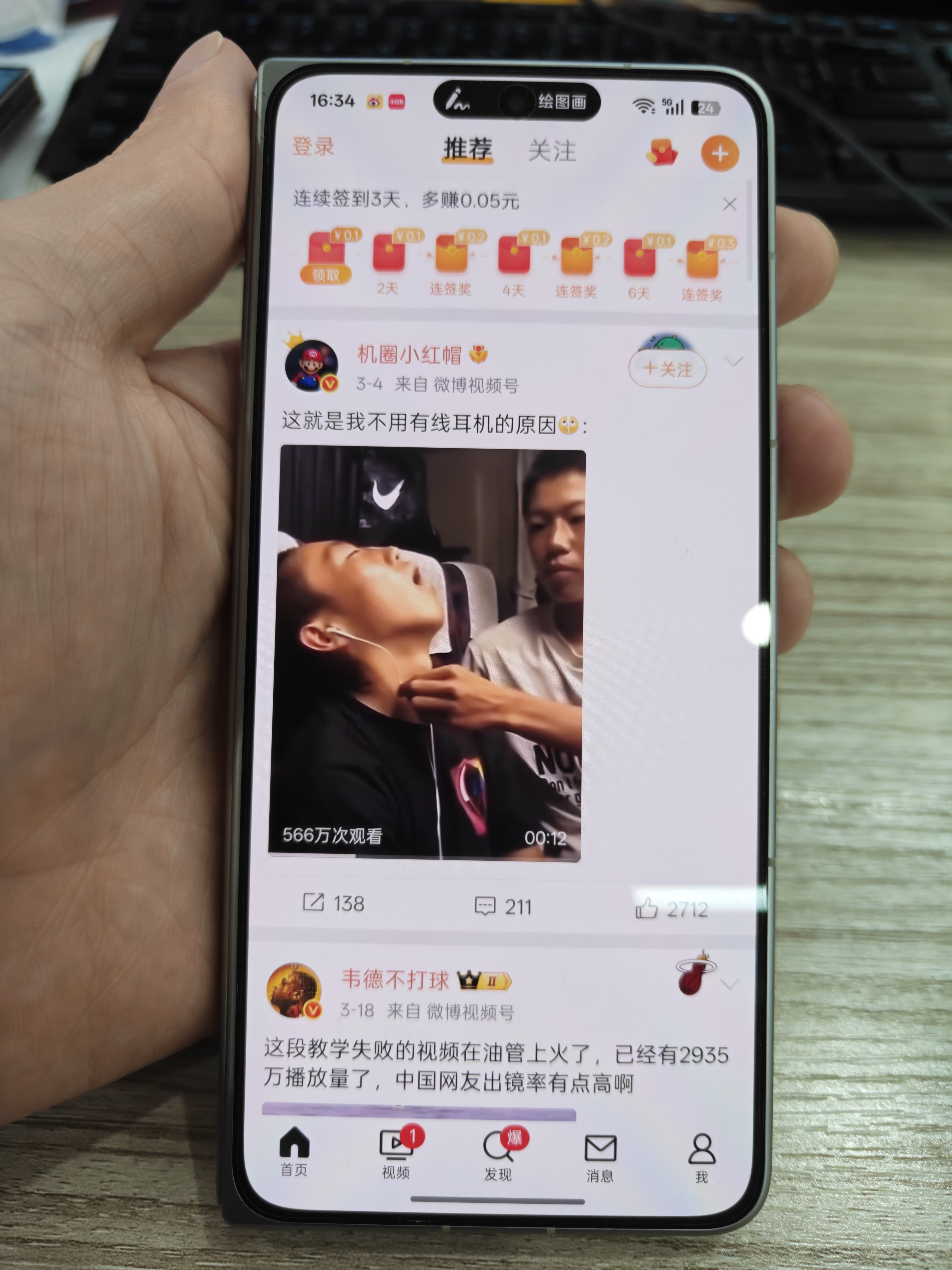 最让我受不了的,就是折痕了。刚开始我也安慰自己,折叠屏嘛,有折痕正常,别太较真。但问题是,这东西不是你想无视就能无视的。平时看网页、刷视频、看白底界面的时候,中间那一道真的挺明显,手指划过去也能感觉到。用久了以后,你每次打开大屏,第一眼都很难不去看那条折痕,特别影响观感。说白了,我买折叠屏就是为了这个大屏更爽,结果中间老有这么一道,心里真的很别扭。这也导致了我后来用内屏都少了。