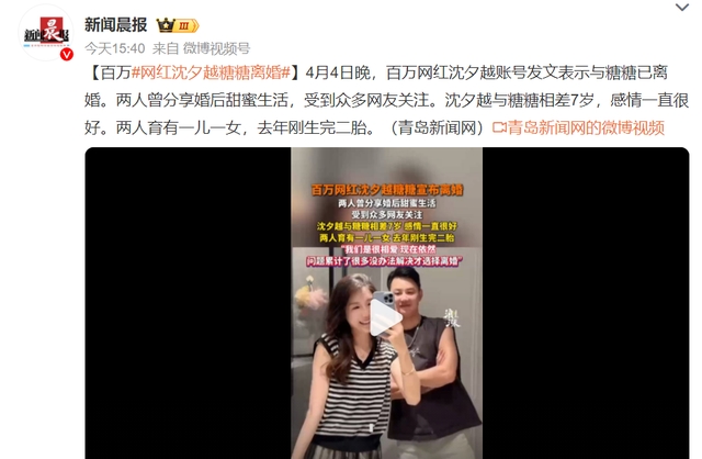 最近网红沈夕越和糖糖离婚的消息传得沸沸扬扬,好多人都在议论。这对有 300 万粉丝的夫妻,去年还在晒二胎满月照,怎么突然就散伙了呢?我刷到他们离婚声明的时候,第一反应就是:现在的网红夫妻感情怎么都这么脆弱啊?