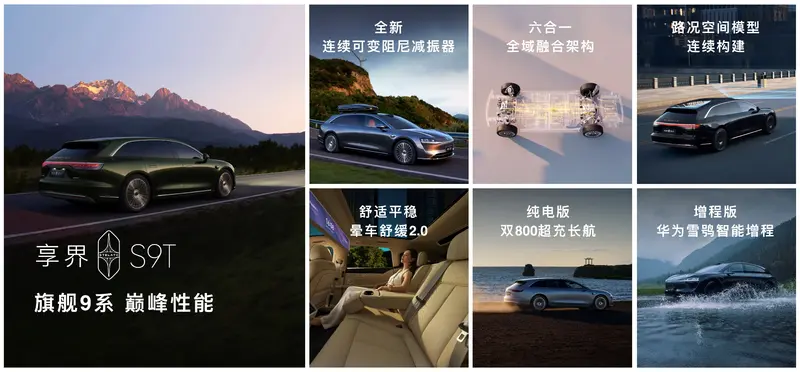 2025年9月16日,在鸿蒙智行享界S9T新品发布会上,享界S9T正式上市。作为鸿蒙智行首款旅行车,享界S9T兼顾轿车的优雅舒适与SUV的豪华大空间,并首批搭载华为乾崑智驾ADS 4、全新华为途灵平台、智慧电动门、华为百万像素智慧投影大灯、全维防碰撞4.0、鸿蒙ALPS健康座舱、华为悦彰音响卓越系列等旗舰9系领先科技配置,是一款集高颜值、大空间、超智慧、长续航、超好开、真安全于一体的全面全能型的豪华旅行车,满足用户城市通勤、探索旷野等多元用车场景,不仅全面革新传统旅行车产品价值,引领旅行车智能化转型,还有望实现产品破圈,覆盖更大的市场。