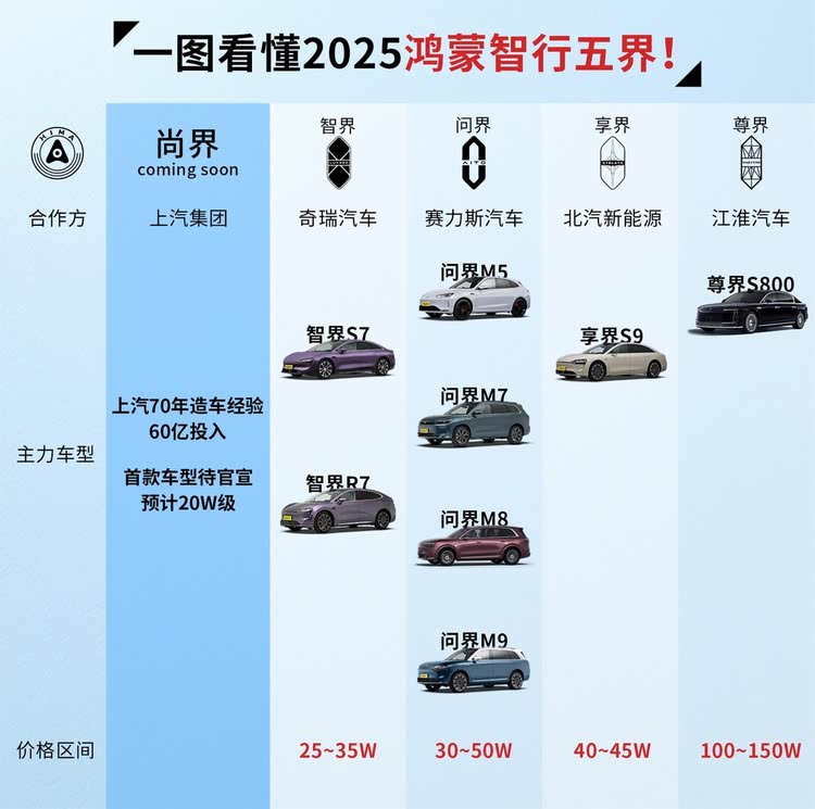 随着尚界的加入,鸿蒙智行已形成涵盖问界、智界、享界、尊界以及尚界的五大品牌矩阵。尚界的诞生,标志着华为智能汽车业务从“高端试水”迈向“全民普惠”阶段。其定位主流市场的策略,有望凭借高性价比的产品,进一步扩大市场份额,推动智能汽车的普及,为更多消费者带来智慧出行的便利。