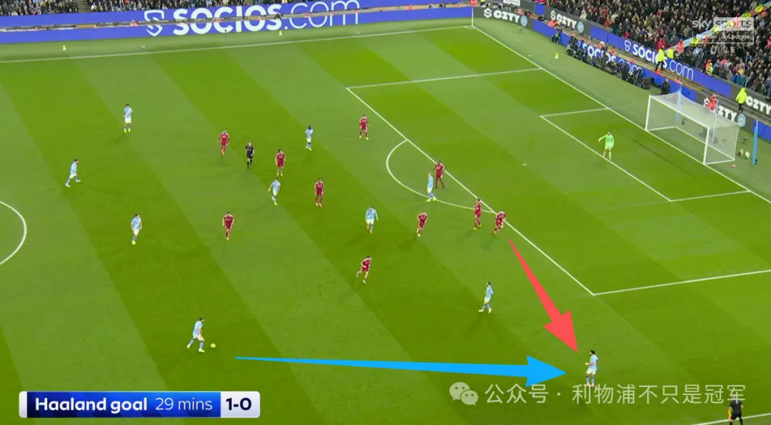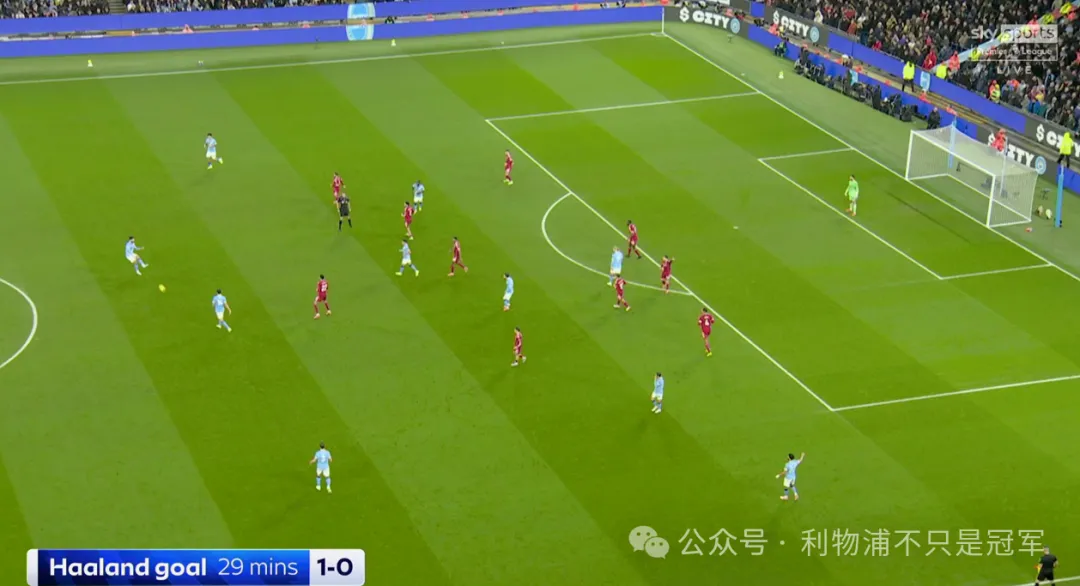 哈兰德进球的时间是28分30秒。在此前1分钟,也就是27分30秒左右,利物浦还在前场逼抢,一度将曼城逼到自己的角球区,但曼城球员通过连续短传配合,轻松瓦解了利物浦的前场逼抢,并很快转入反击。