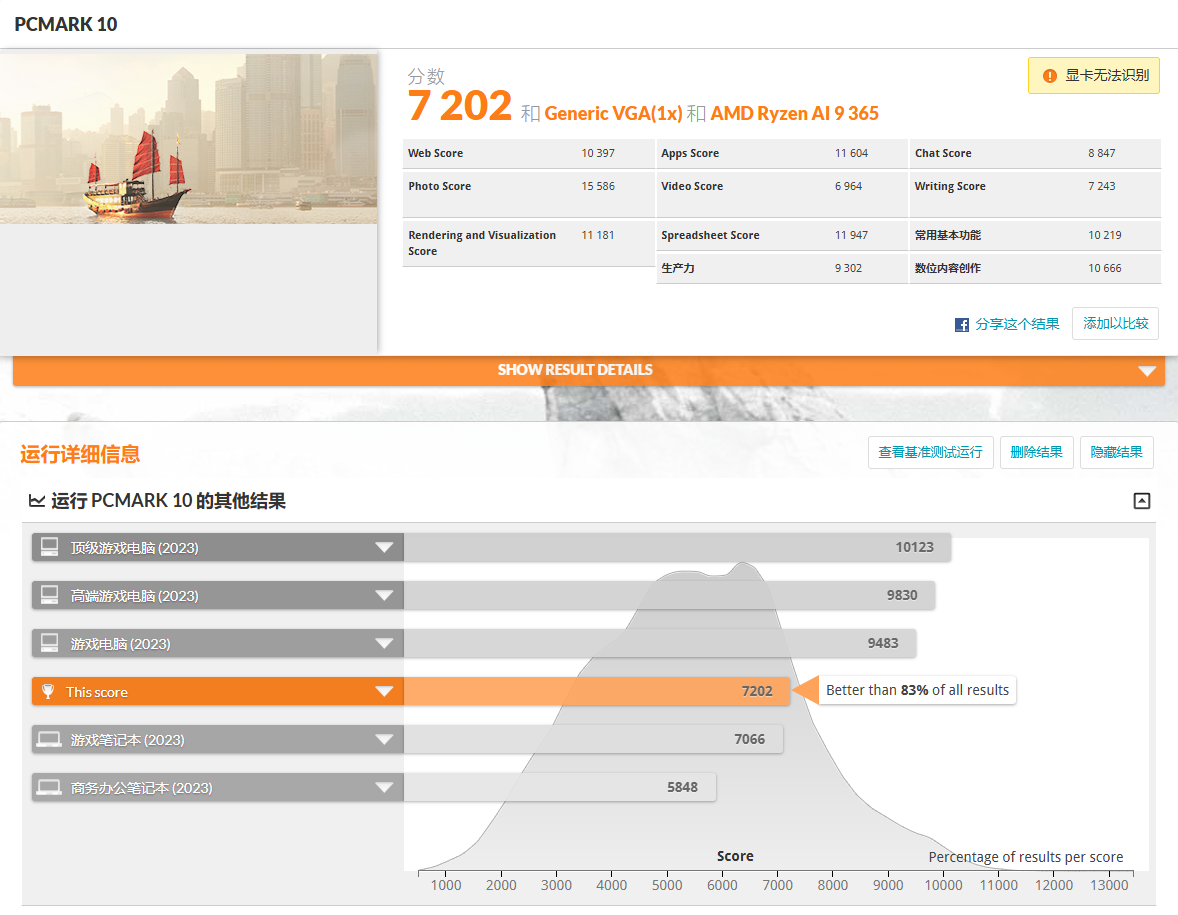 在PCMark10跑分天梯分布图里,SER9 Pro的基准分已超越83%的样本,可归为“2023年游戏笔记本”,妥妥的生产力无忧。