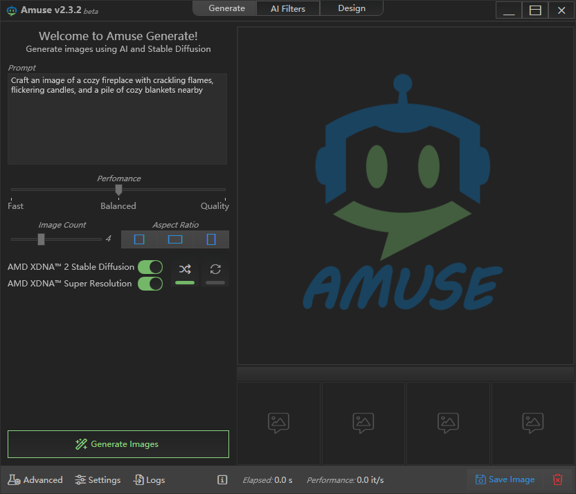 Amuse是AMD官方推出的AI创作工具,它基于Stable Diffusion模型进行本地化部署,在桌面端提供傻瓜式的AI图像生成能力,当然更重要的是,针对锐龙AI 300处理器的专属优化。比如“EZ模式”的文生图功能,就能调用NPU来跑Stable Diffusion并提升分辨率。