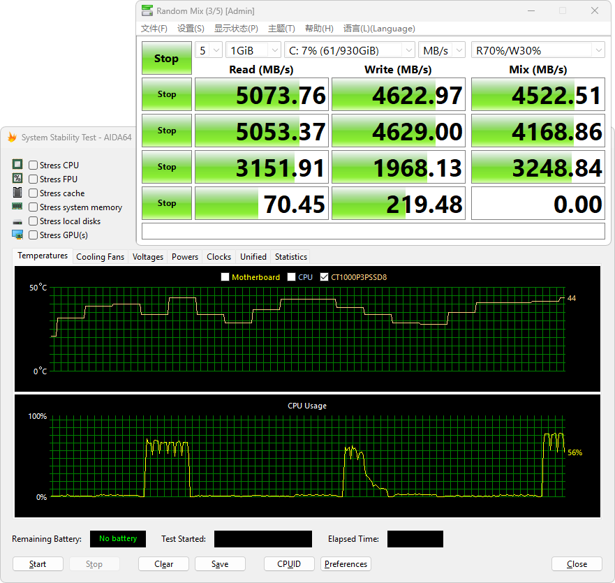 更惊喜的是,采用TLC颗粒的英睿达P3 Plus(new),温控相当卓越,跑一圈CrystalDiskMark,硬盘最高温度仅44℃!没有对比不知道厉害,参考较瘦手头采用QLC颗粒的英睿达P3 Plus(old),同场景下最高温度超过50℃,就问意外不意外?