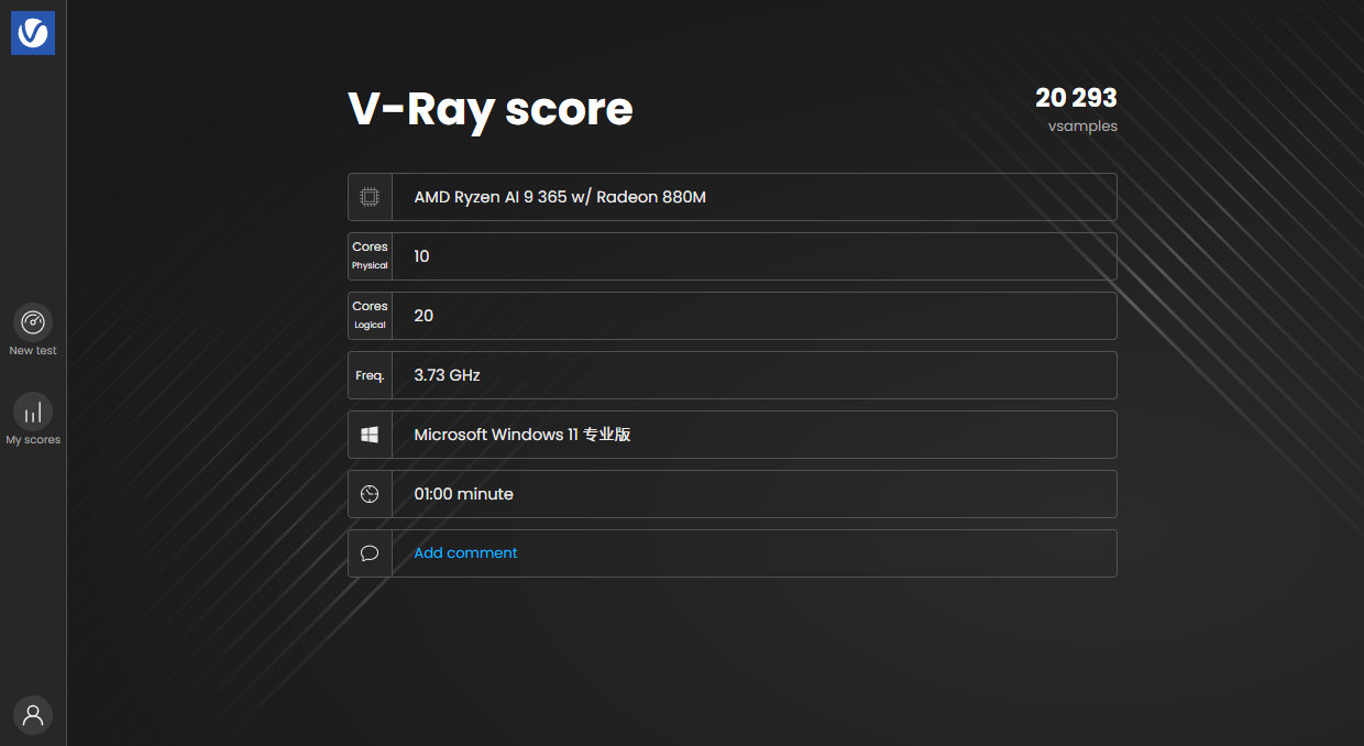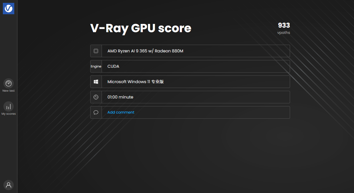 基于V-Ray渲染技术的基准测试软件,CPU评分20293,相比锐龙8845HS提升33%;iGPU-CUDA评分933,相比锐龙8845HS提升29%,轻松助力内容创作。