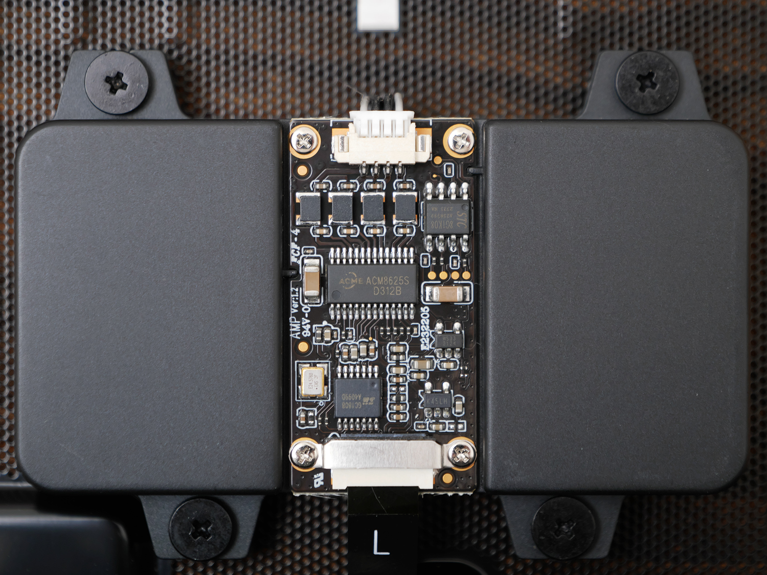 内置音响采用独立PCB模块化设计,数字功放芯片为至盛半导体的ACM8625S(内置DSP算法),ADC芯片为芯麦科技的GC1808,控制芯片为宏晶科技的STC8G1K08,咳咳,外加两个23mm扬声器单元。