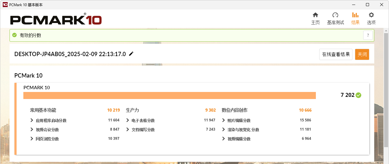 典型的生产力基准测试标杆,总分7202,各子项目分值落在6900-15600区间,基本没有短板,三大项目均在万分左右,其中内容创作领域表现亮眼,不愧是全能战士。