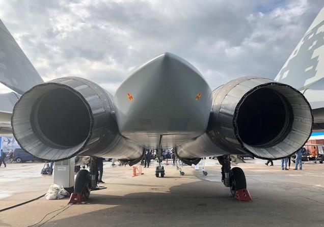 177S发动机,估计是苏-57的117的出口型。产品30推力18吨,而且产品30的尾喷口锯齿更多更小,推力矢量也是全向的,这个177S才14.5吨,军推9吨,锯齿又大又少,而且推力矢量作动机构是二维的。苏-35的117S是14吨和8.8吨,可以排除。所以大概率就是117的出口版,尾喷口锯齿修型了。#珠海航展#\u0002