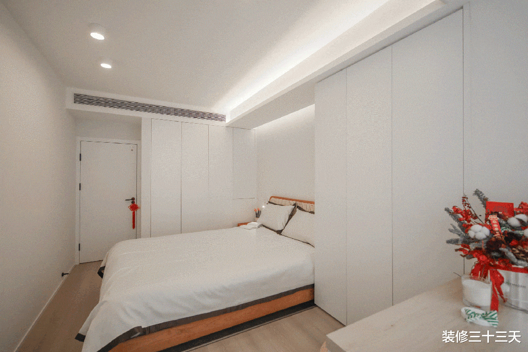 ▲ 两组衣柜提供了充足收纳,柜体白色与墙面融为一体,放大了空间感