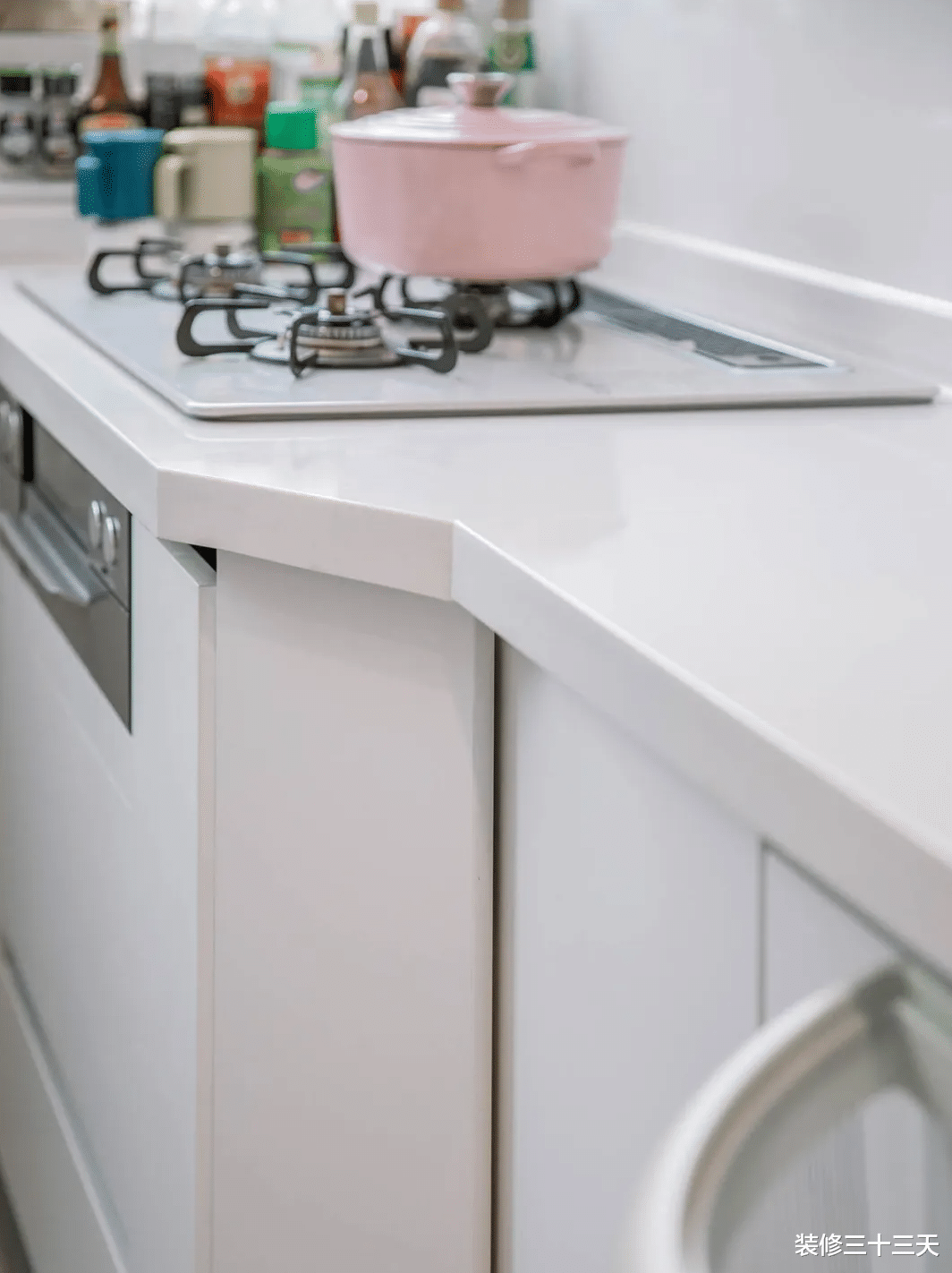 ▲ 为满足屋主放置三眼灶的需求,特意设计斜切,让灶具位置台面深度多出20cm