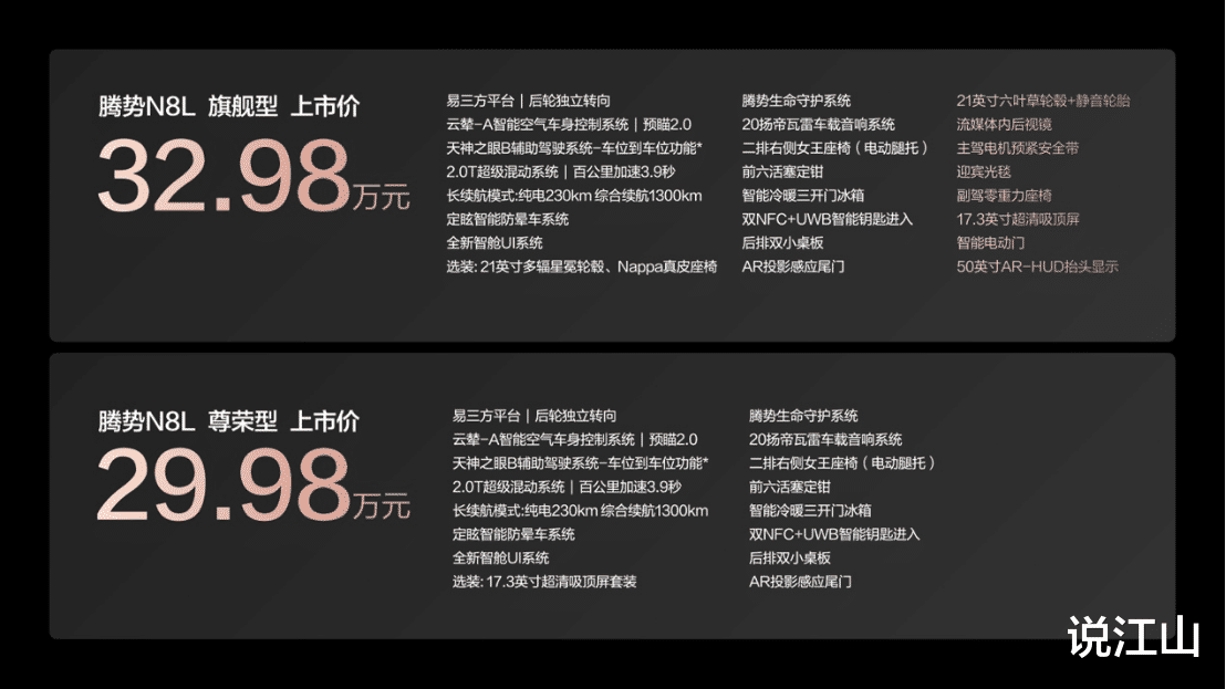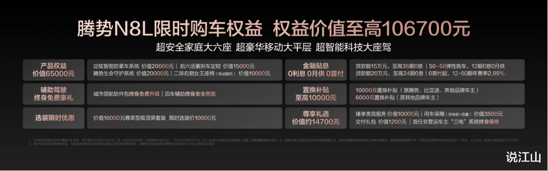 腾势N8L的定价在29.98-32.98万元,结合其给出的至高10.67万元的限时购车权益(如0息金融、置换补贴等),性价比非常突出。它没有选择成为某个单项的“偏科生”,而是在空间、操控、安全、智能这四大核心维度上都做到了顶级水准,是一款实力极为均衡的“六边形战士”。对于追求品质、注重全家出行体验的消费者来说,腾势N8L无疑是一颗分量极重的“定心丸”,绝对值得你亲自去试驾一番,感受它超越传统豪华的产品魅力。