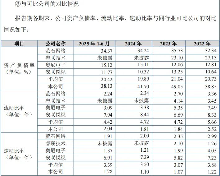2022年至2025年上半年,觅睿科技的资产负债率呈现波动变化,分别为38.85%、49.05%、41.70%和38.13%。这一趋势与公司流动比率(2.52、1.84、1.81、2.04)及速动比率(1.22、1.07、1.10、1.28)同步,均表现为先降后升。公司解释称,2022年末的低负债率源于无短期借款,而2024年后的流动性改善则受益于经营效益提升带来的银行存款增长。然而,这一表面平稳的财务轨迹下,隐藏着值得深究的操作逻辑。