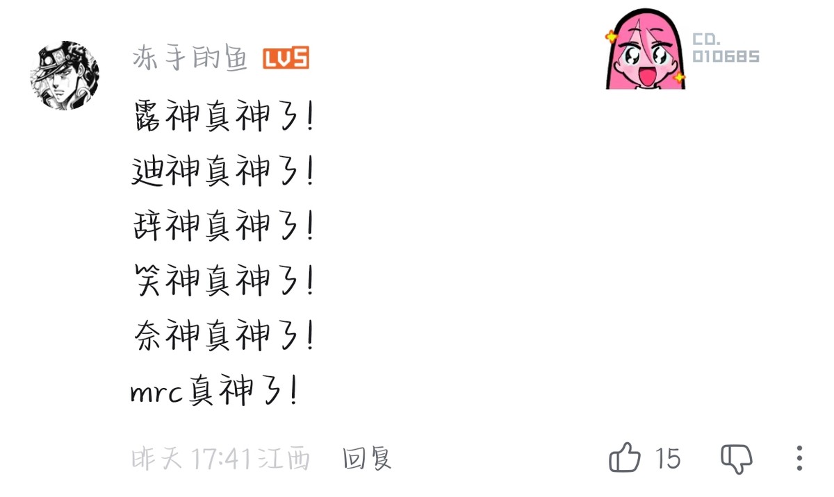 其中,BaiLu凭借出色表现荣获本场比赛MVP。在队伍处于劣势时,他先以一次三抓尽力缩小分差,随后在第二局中斩获四抓,一举夺回优势,最终需要他保平时也是稳稳拿下对局。观众看完BaiLu的精彩操作后不禁调侃:“露神照镜子真的能看见自己吗?答案是不能,因为神本无相!”如此强大的BaiLu,未来还将为我们带来怎样惊艳的表现?让我们共同期待吧!