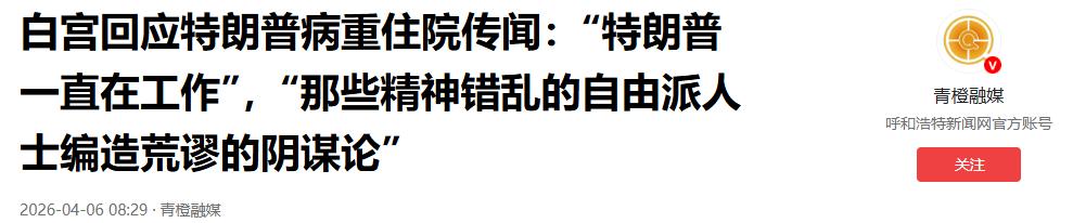 面对铺天盖地的传言,白宫第一时间火速辟谣,态度坚决且明确。白宫通讯主任史蒂文・张公开表示,在整个复活节周末,特朗普一直在白宫和椭圆形办公室马不停蹄地工作,所谓 “住院” 消息纯属无稽之谈。