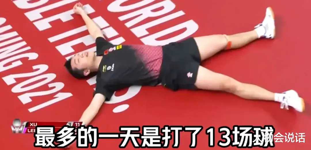 有人统计过许昕这一年的行程,有时一天3赛,有时一天6赛,最多的时候,一天13赛,平均每隔两三个小时,就要打一场比赛。