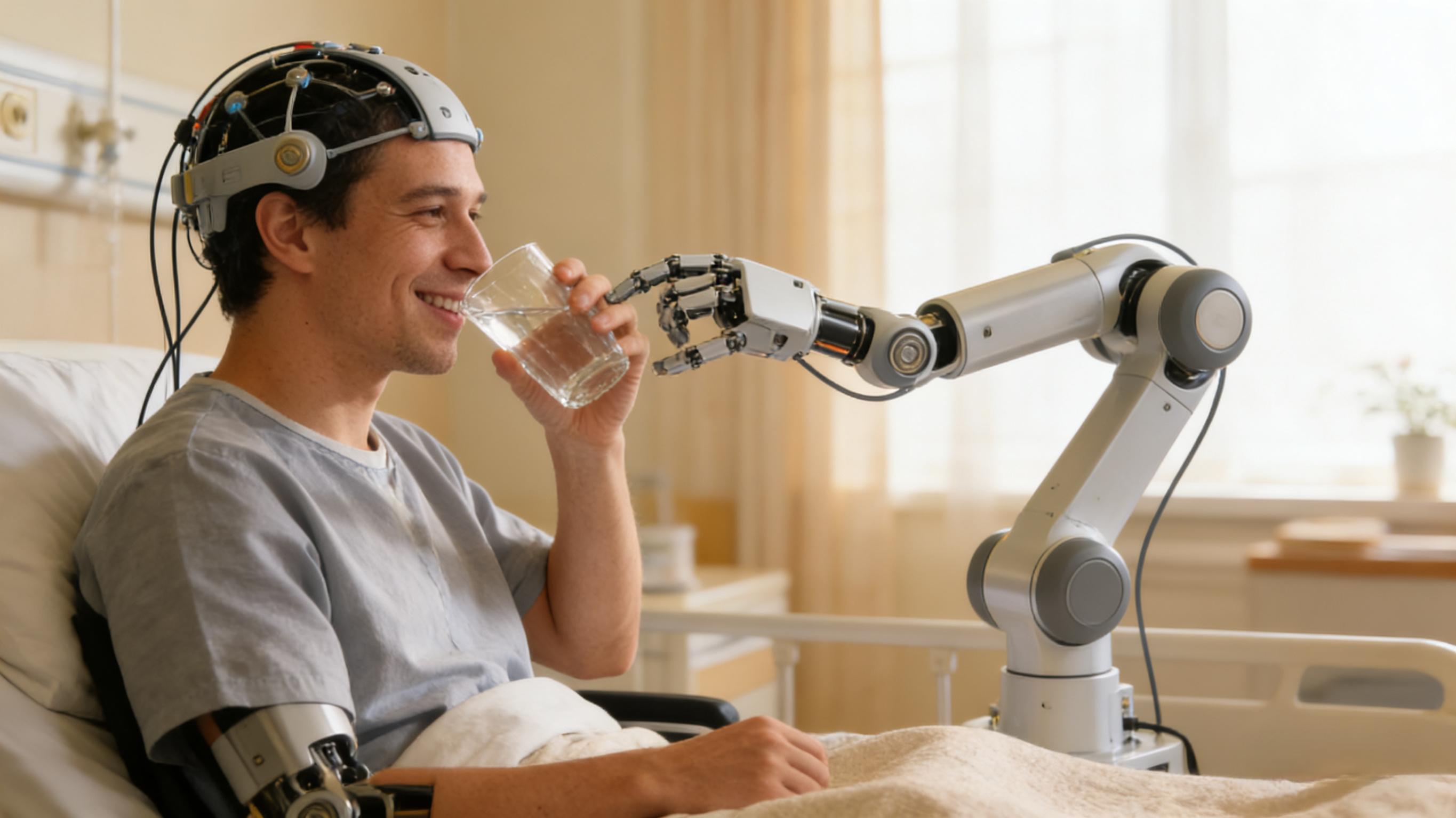 这项被称为“意念操控”的黑科技,无需开颅,仅在头部植入一枚硬币大小的装置,就能让高位截瘫、脊髓损伤患者用意念控制机械手,独立完成抓握、喝水、吃饭、使用手机等日常动作。临床试验数据显示,30余名受试患者抓握成功率100%,多名瘫痪多年患者重新实现生活自理,告别长期陪护。