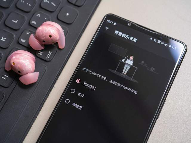 这个功能相当于给声音加上一层音效,模拟出房间、客厅、咖啡厅用外放时声音受到不同反射的环绕效果,带来沉浸氛围感之余,又不至于注意力分散。
