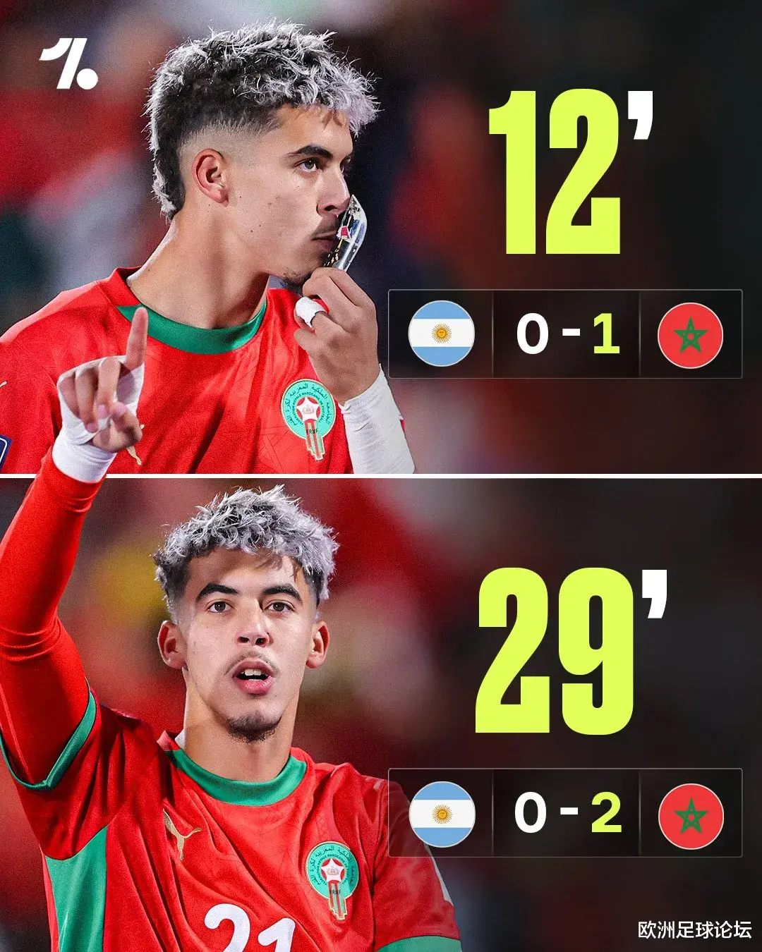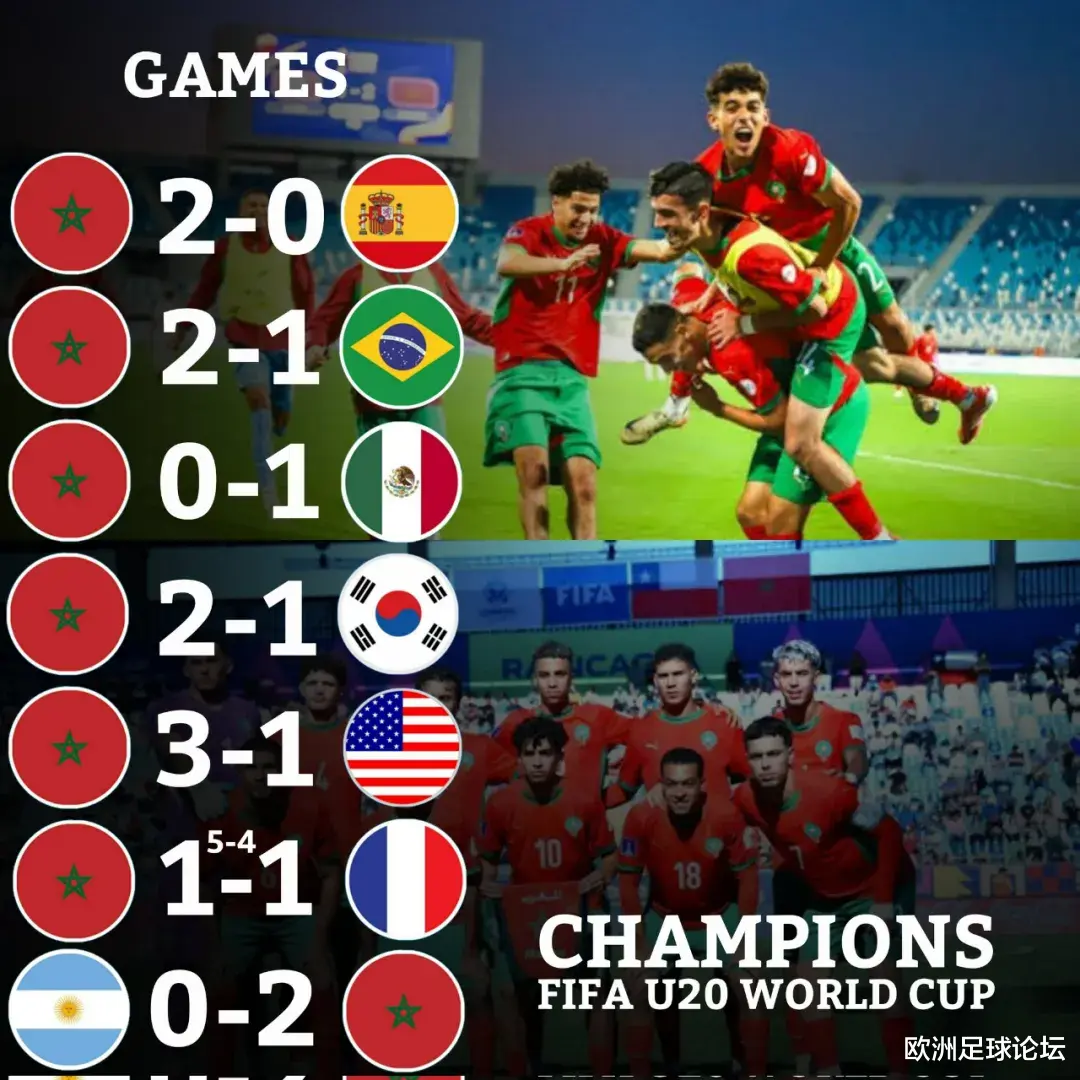 要知道,阿根廷是获得过6次世青赛冠军的顶级传统豪强。在决赛前的6场比赛中,阿根廷取得全胜、打进15球仅丢2球,摩洛哥击败阿根廷的难度可想而知。