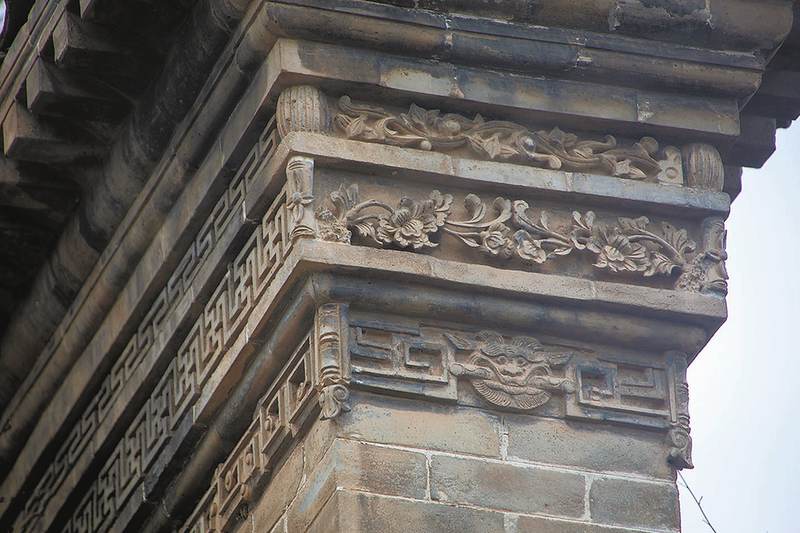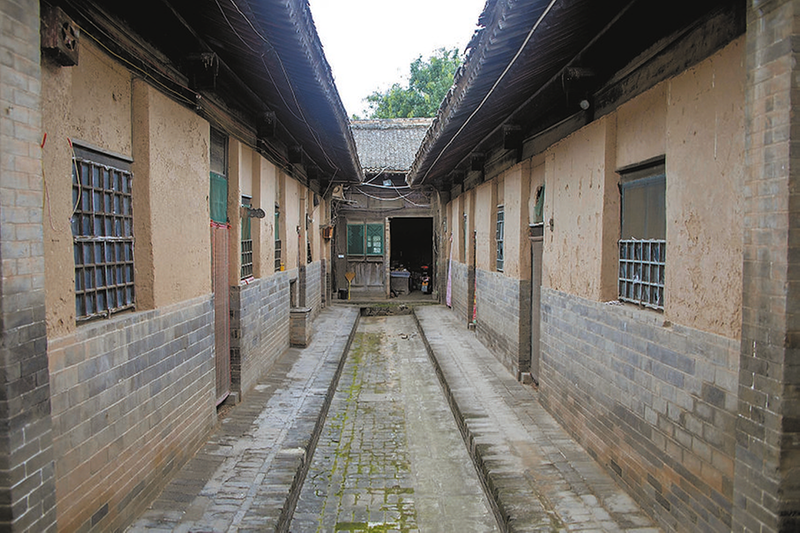 屋脊杨家祠堂柱础石砖雕古城墙遗址上的木瓜树铁艺花民居石墩在合阳县路井镇,乳罗山向南延伸的坡地上有一个历史悠久的村落——杨