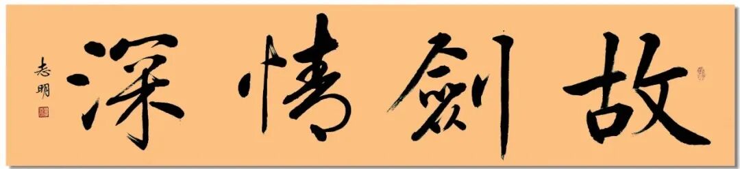 这组刘志明老师的四字横幅行书,是典型的当代文人行书,以二王、米芾为根基,融入赵孟頫的温润与启功的劲健,形成了 “雄健灵动