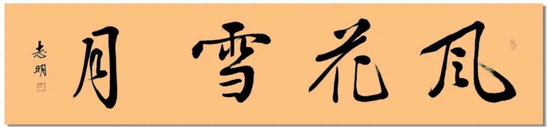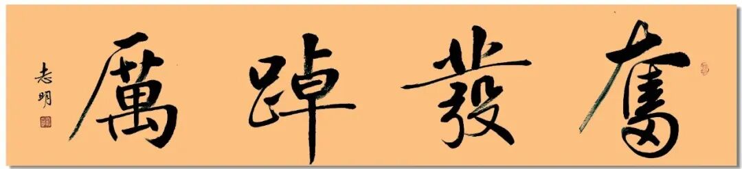 这组刘志明老师的四字横幅行书,是典型的当代文人行书,以二王、米芾为根基,融入赵孟頫的温润与启功的劲健,形成了 “雄健灵动、雅俗共赏、文气充盈” 的个人风格,是非常适合悬挂、兼具艺术与实用价值的精品。