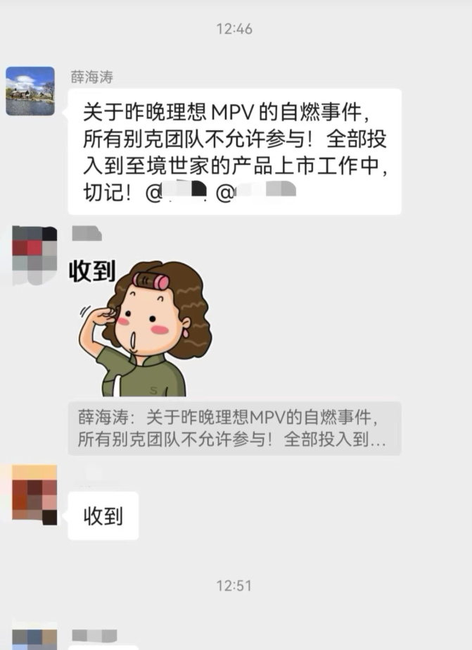 据截图显示,薛海涛明确要求别克团队不参与讨论或传播理想MEGA的燃烧相关话题,而是集中精力做好自己的新产品研发与推广。