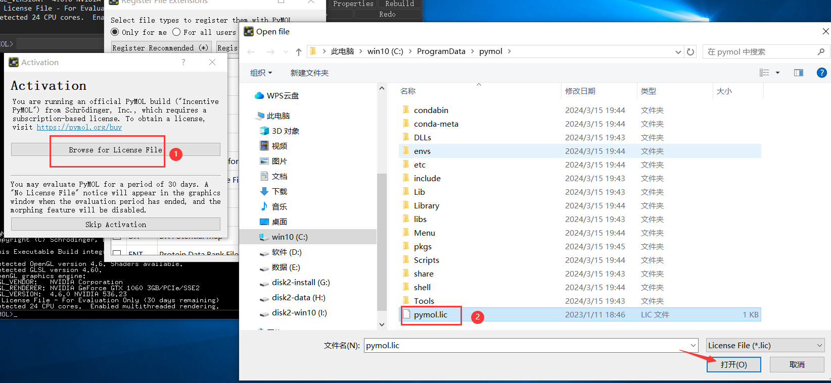 12. 点击 Browse for License File,选择 pymol.lic,点击 打开