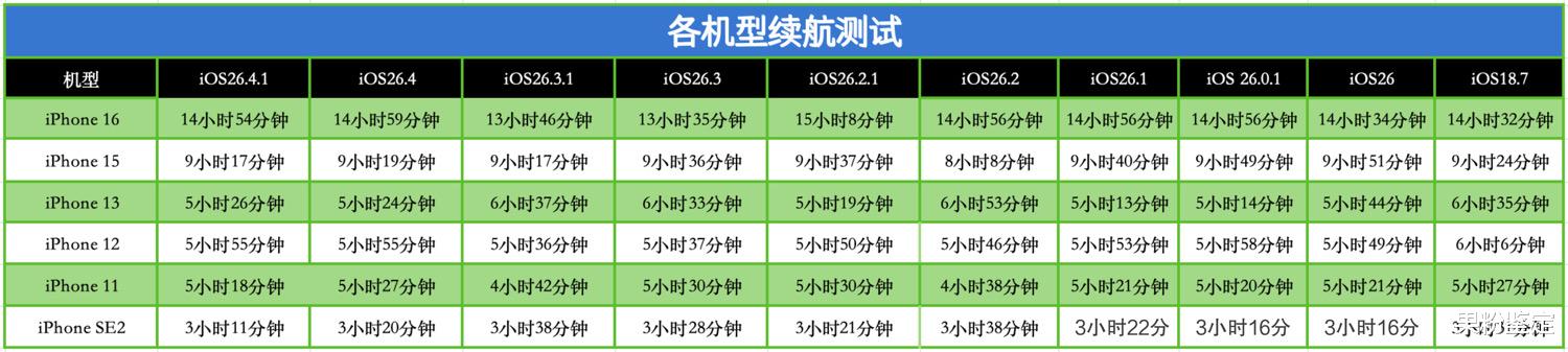 iPhone16从iOS26.4升级到iOS26.4.1续航提升2分钟;