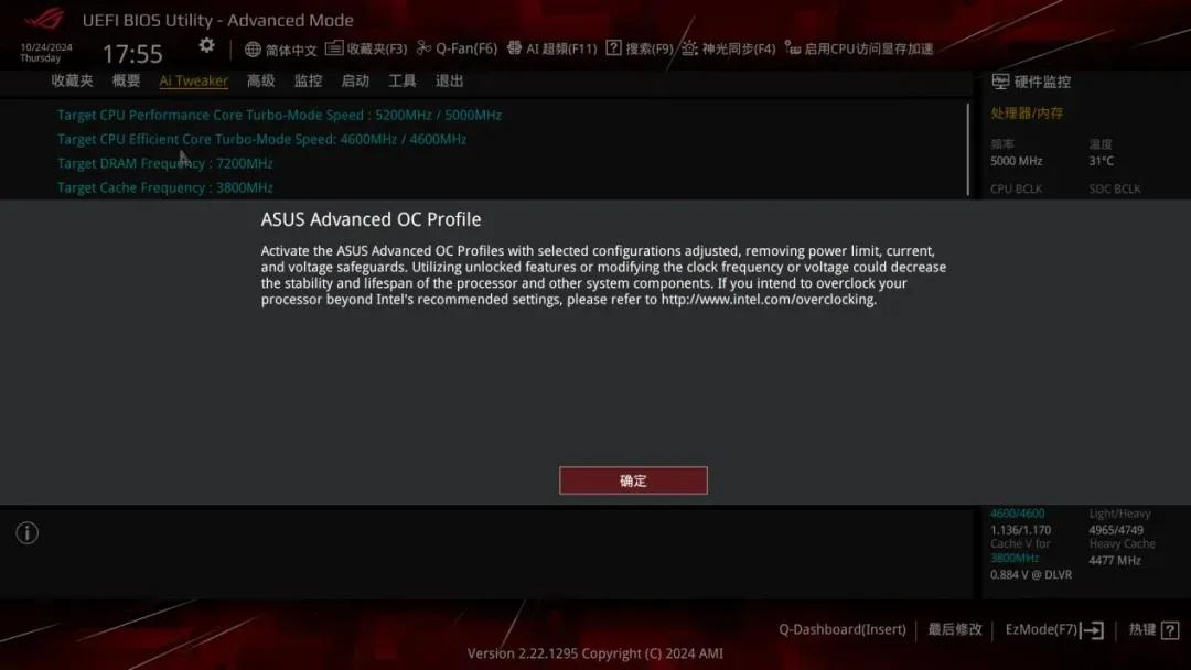 ▲英特尔主板则会采用Advanced OC Profile配置,也就是解锁处理器的电流、功耗限制,让处理器能工作在更高的频率下。