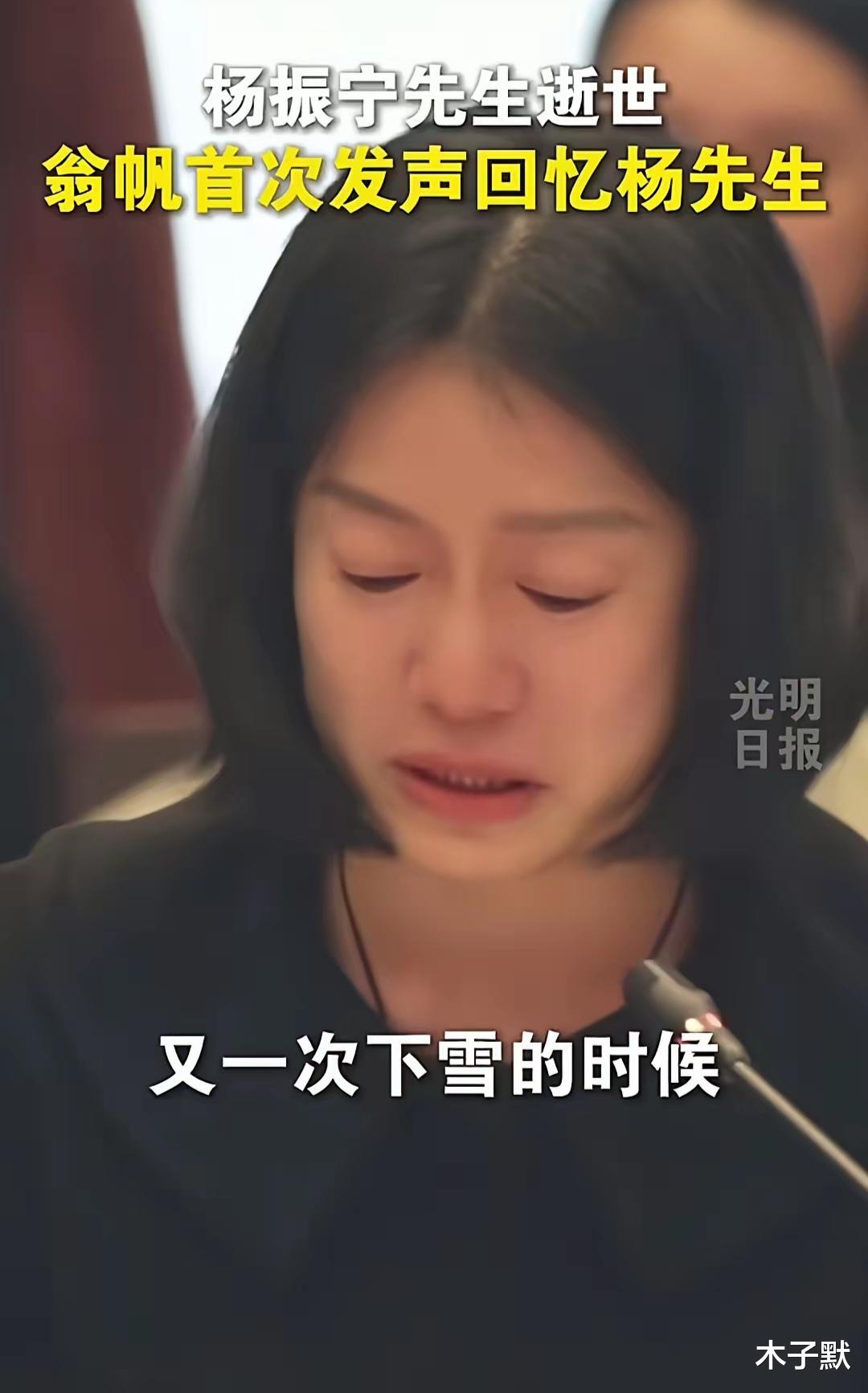 翁帆对丈夫的称呼也发生过三次改变,最开始的时候是杨教授,到后来是振宁先生,追思会上他称他为杨先生。
