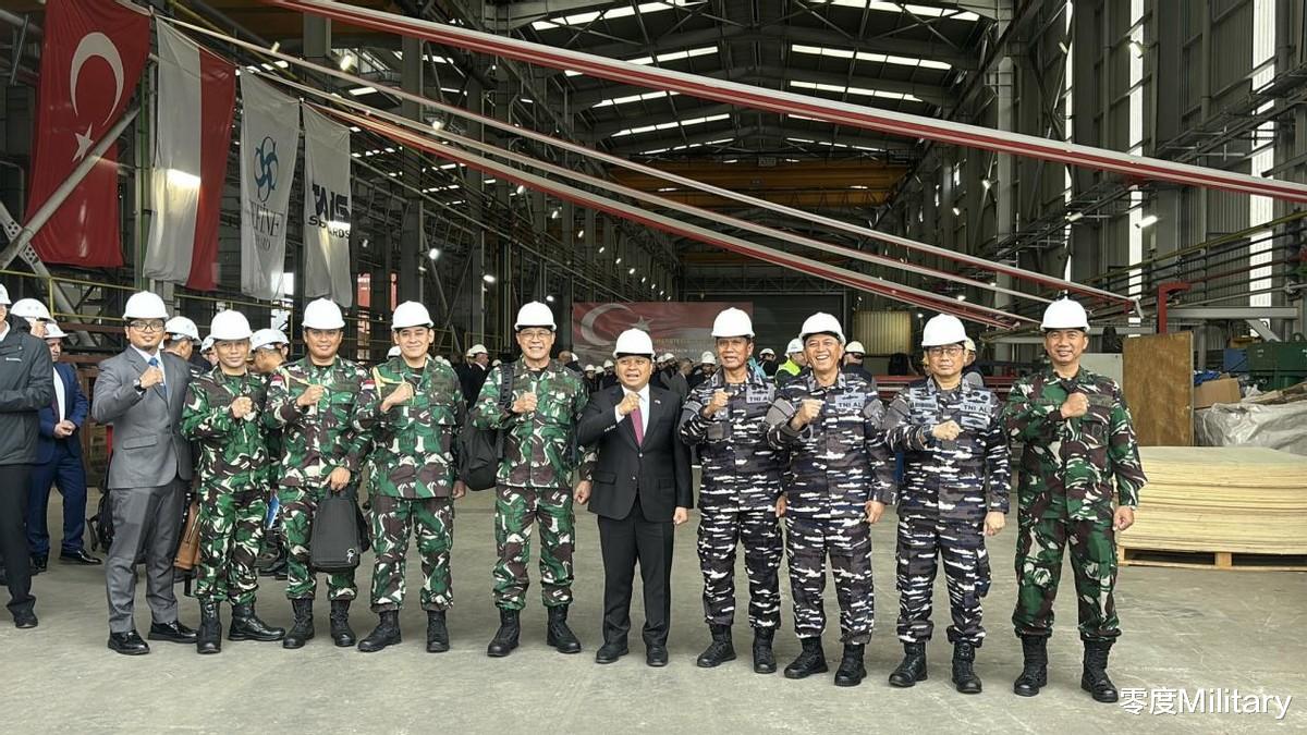 在钢材切割仪式上,印尼海军中将雷蒂奥诺·昆托、国防设施发展秘书、印尼驻土耳其大使、土耳其联合国际造船公司总监、塞芬造船厂首席执行官和塞芬造船厂总经理共同按下按钮,标志着钢材切割的启动。