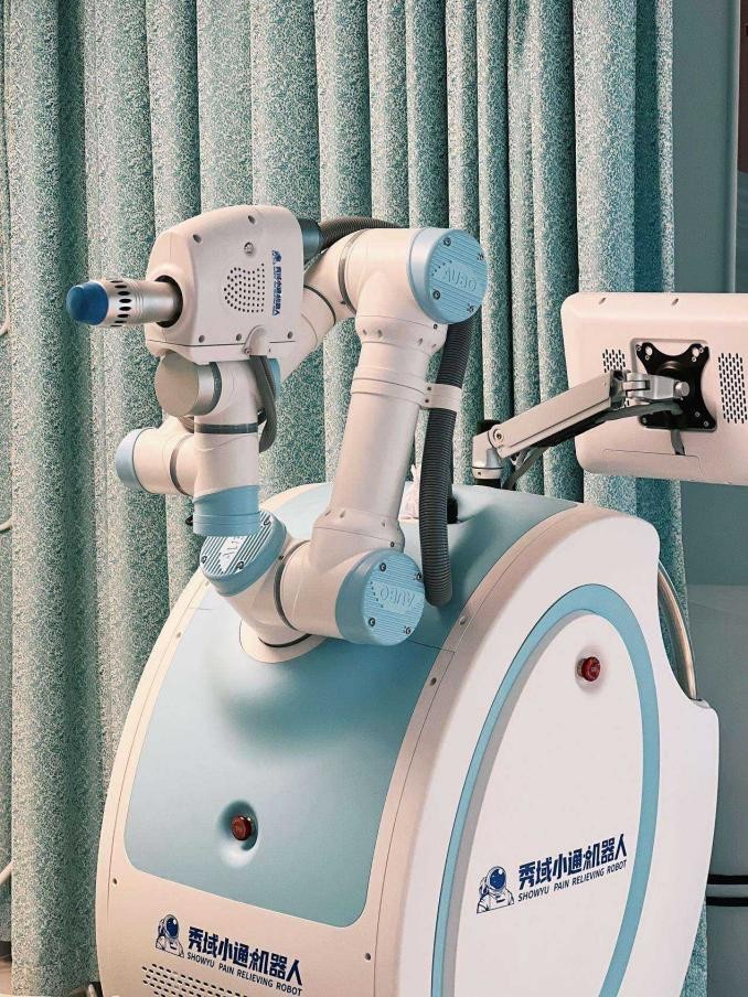 周末我就拖着还隐隐作痛的膝盖去了一家附近的秀域门店。工作人员特别细心,先了解了我的膝盖情况,然后标记出了疼痛点。工作人员说,腰是打开下肢的关键,所以虽然我是膝盖痛,还是会从腰部就开始做深层。而且因为膝盖部位范围比较小,所以腰部是小通机器人操作,膝盖这个重点部位就用手持点阵波来加强护理。