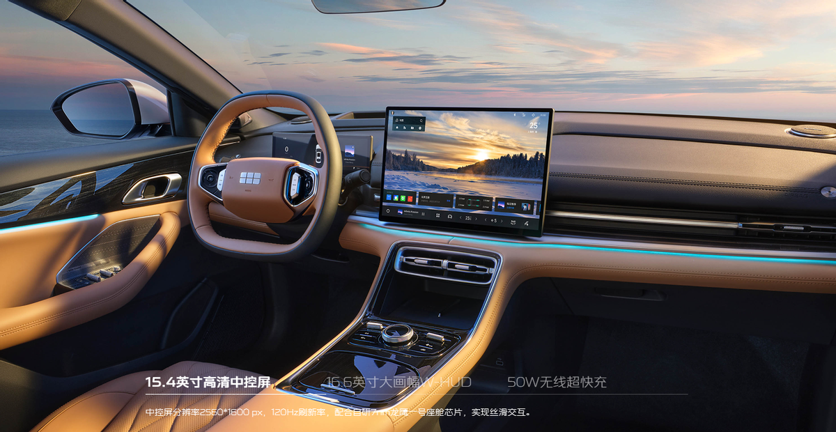空间上,车身尺寸4918×1905×1495mm,轴距2845mm,后排腿部空间达950mm,膝部余量132mm,配合纯平地板设计,五人乘坐时后排仍能保持宽松。座椅采用10层复合材质,集成14点位SPA级按摩功能,覆盖腰背臀腿区域,前排支持三级加热与通风。后备箱容积535L,后排座椅放倒后可扩展至988L,储物格设计覆盖28处高频使用场景。