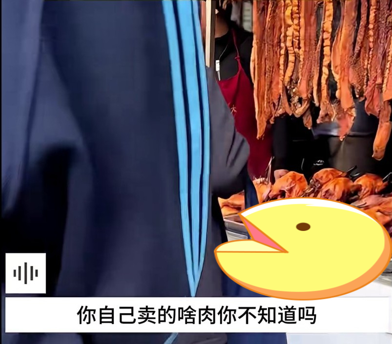 大妈理直气壮地回怼道:“你还有脸问,自己卖的啥肉你不知道吗?用那么老厚大肥肉膘子糊弄我啊?昨天晚上买时就剩三块肉那挂着,你这就是卖剩下的。”