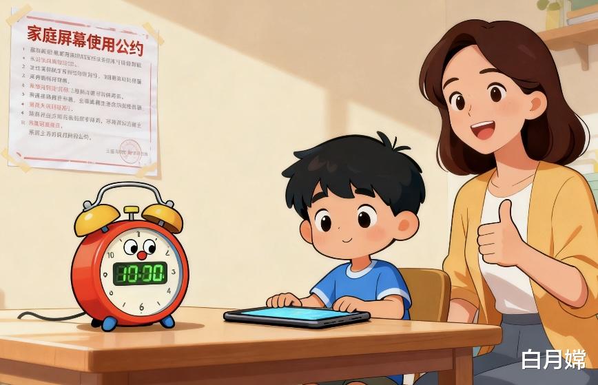 明确屏幕时间(如每日1小时),用“定时提醒”或“家庭公约”工具辅助执行。规则需全家遵守,避免“双标”。