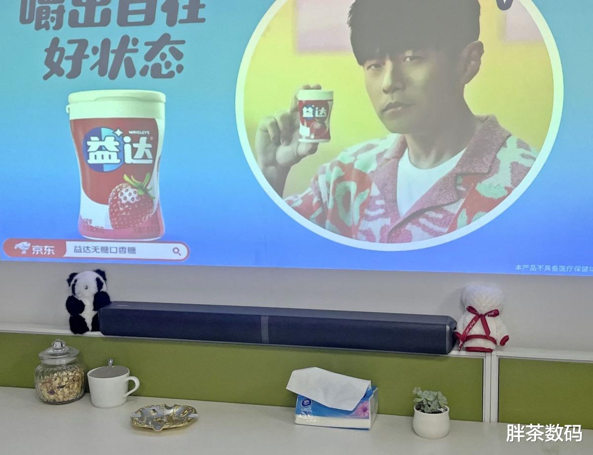 同时采用了紧凑型设计,整体尺寸小巧,放置在电视柜上不怎么占空间,很适合小户型家庭,重量也轻便,摆放和移动都很方便。两侧边角进行了圆润设计,造型设计很有立体感,周末一家人聚在一起看电影或追剧,都是不错的享受。