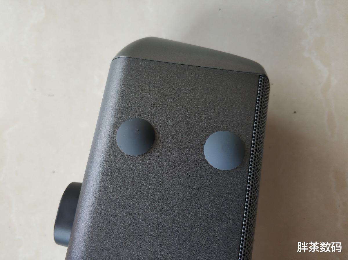 正面中间是触控区域,依次有音量+键、音量-键和开关机键,能实现音量调节、上下曲音乐切换和输入模式的切换等功能,操作简单方便。