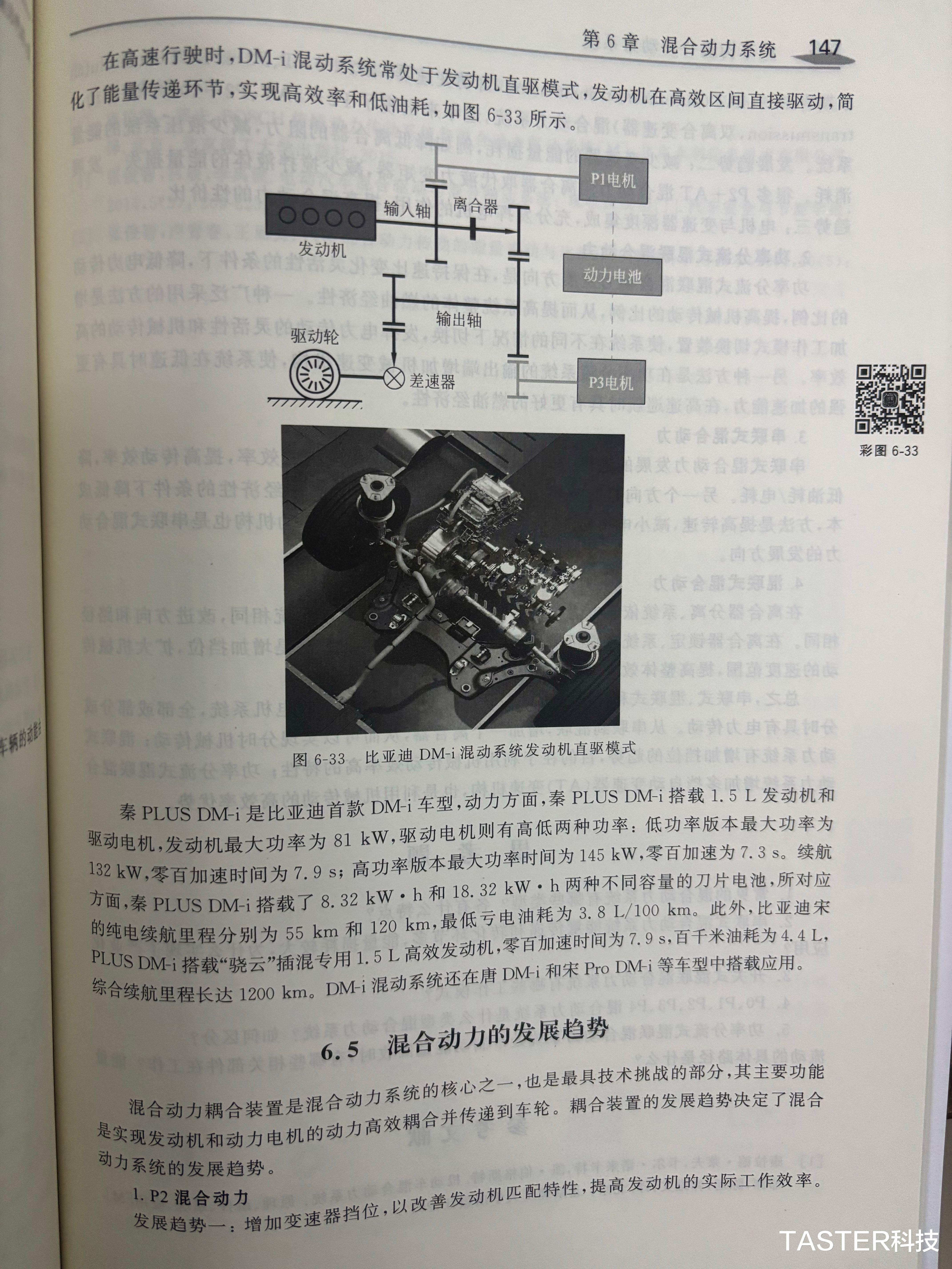 2021年,比亚迪第四代DM技术发布,凭借给发动机做减法,取消轮系,创新出“以电为主”的混动架构等亮点,收获市场与行业高度认可,被清华大学编委会编入专业必修课教科书《汽车动力系统原理》,并作为该教材封面。
