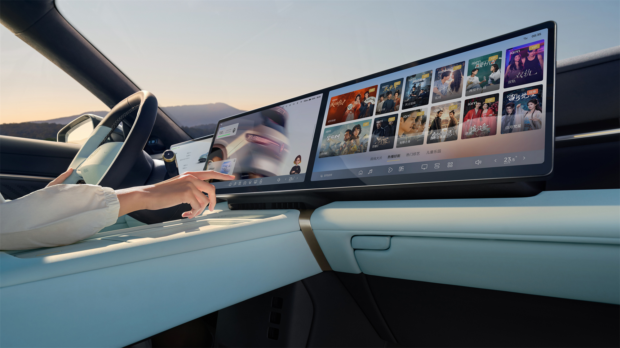 智能座舱方面,与众08配备双15英寸2.4K超高清智能双联屏,支持350多种自定义场景模式。AI智能伙伴接入了智谱AI基座大模型和文心模型的双重AI能力,支持语音控制。