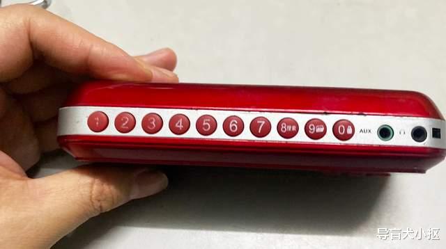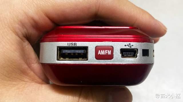 翻转机身到中框其它区域,右侧设置了lv220的拓展接口区,它包括标准的usb口、迷你usb口、am/fm切换按键、aux线缆口、耳机口等。在中框底部同时有一个tf卡槽,和标准usb口功能相同。来到机身后盖,是完整的底壳,红色配色,塑料材质非常容易磨花。里面是内置的锂电池,续航还不错,多年使用后,电池也没有老化。