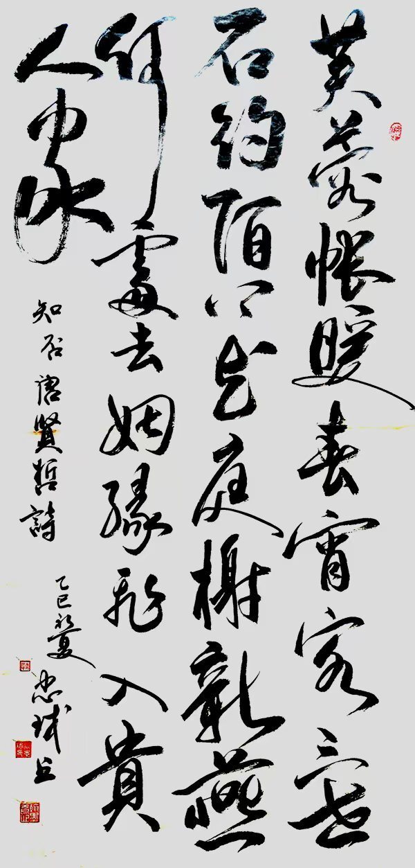 从艺术价值来看,唐忠球的作品具有极高的学术深度和艺术水准。他的作品不仅技法精湛,更融入了真挚的情感与深邃的思想,营造出别具一格的意境,内涵丰富、意蕴深远。这种深厚的艺术功底和独特的艺术语言,使他的作品在众多当代书法家中脱颖而出,具有极高的辨识度。