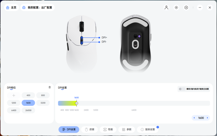 DPI设置、回报率设置:125Hz-8000Hz多档可调、静默高度:共11档可调