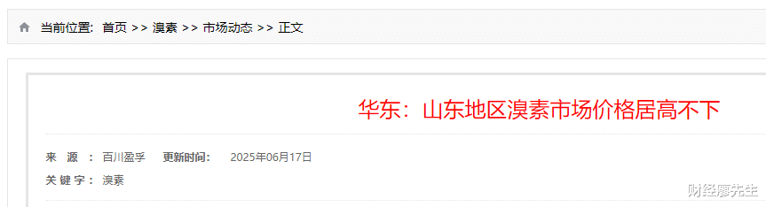 而根据百川盈孚6月17日消息,自从以色列和伊朗交火以来,山东地区的溴素报价居高不下