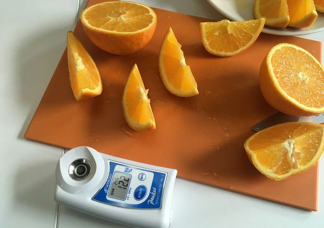 伦晚的甜度有16~17°,可能目前的伦晚还很难达到。实际测量早期上市的时候12~13°,已经有很好的口感了。而且个人觉得秭归脐橙最大的特点是甜中带酸,能够有很好的回味感。