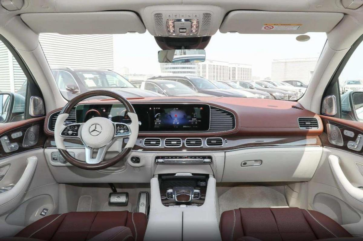 进入迈巴赫 GLS的内部,中控台的布置与奔驰 GLS一模一样,不过却更加的奢华,两种颜色的布料交织在一起,中间是棕色的皮革,上面有着精美的针脚,看起来更加的舒服,而底部则是一种温暖的颜色,而在中间则是一种木质的饰物,边缘则是一种镀铬的金属,这是一种很好的工艺,与迈巴赫 GLS的奢华风格不谋而合,而在中间则是一种两个屏幕,同样是一种高科技的体验。