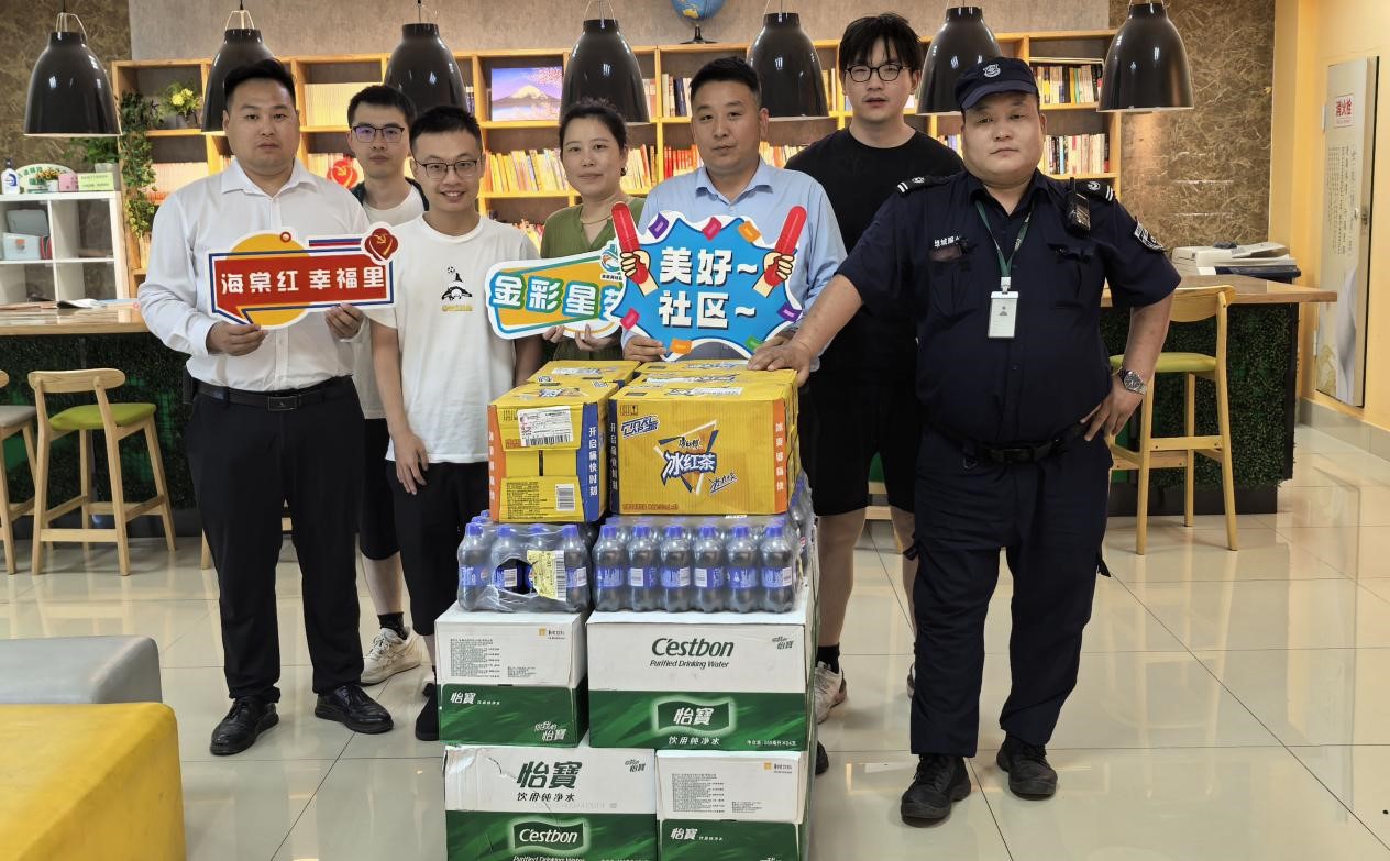 在此次“暖‘新’行动”中,金星苑社区党总支联合红色管家志愿者,为辖区内的外卖骑手、快递员等新业态劳动者准备了解暑清凉饮料等防暑物资,让他们在奔波间隙能享受到片刻清凉。