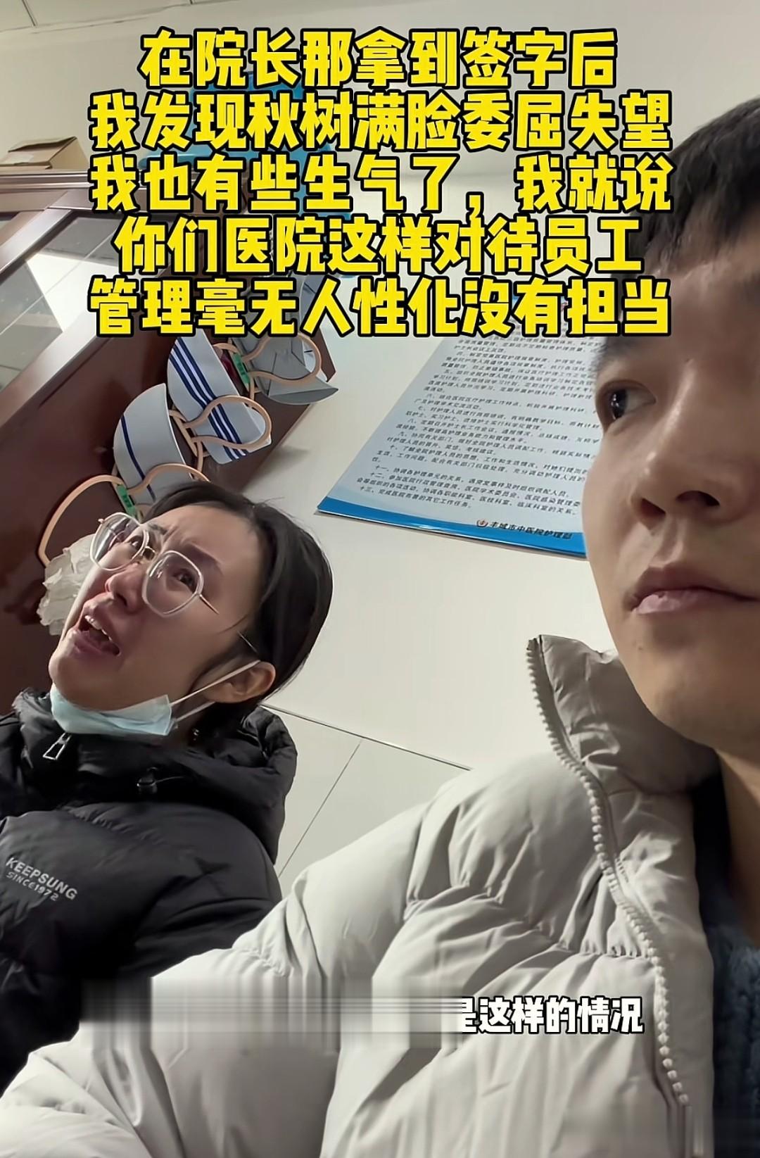 院方回应面对护士的质疑,视频中出现的医院工作人员回应称:“我们医院的规定真的就是这样,你觉得我们不人性化,我们可以坐下来商量。”