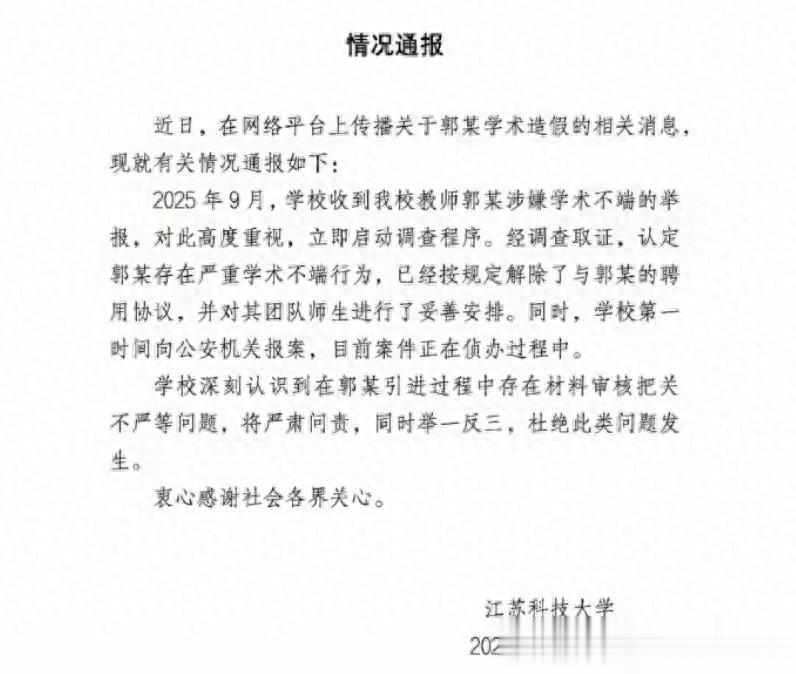 近日,江苏科技大学一则解聘通报引爆全网:该校海洋装备研究院“首席科学家”郭伟因学历造假、学术成果虚构等多项严重违规,被学校紧急开除,其担任的博士生导师资格也被一并撤销。