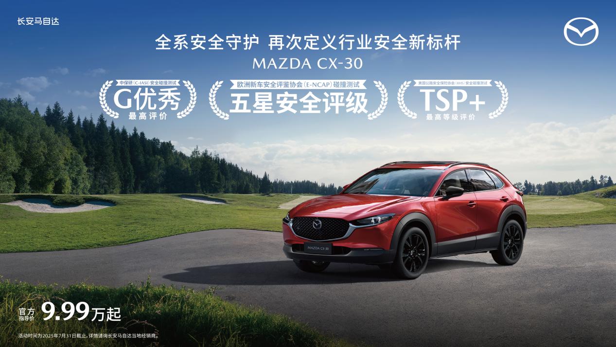 MAZDA CX-30 则是为那些既爱城市通勤又向往周末郊游的人准备的。175mm 的离地间隙,让它既有 SUV 的通过性,又没丢了轿车的操控感;805mm 进深的后备箱,装下婴儿车和露营装备绰绰有余,前后排的宽适空间搭配高级真皮座椅,多场景用车需求都能满足。安全上,它可是全球权威测试的 “优等生”:欧洲 E-NCAP 五星、北美 IIHS“TSP+”、澳洲 A-NCAP 五星,再加上中保研 6 项「G」优秀,这份安全感走到哪都让人安心。现在全系直降 3.2 万,9.99 万起的价格,让轻奢跑旅生活的门槛低了不少。