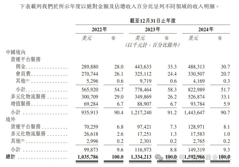 货拉拉早已不再是单纯的同城货运信息匹配平台,近年来公司大力拓展业务边界,向综合性物流服务商转型。招股书数据显示,在中国境内,以跨城货运、综合企业服务、零担、搬家服务为代表的“多元化物流服务”正成为强劲的增长引擎。其收入占比从2023年的26.2%跃升至2024年的33.1%,并在2025年上半年进一步攀升至40.1%。